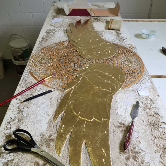 Meine Inspiration entspringt dem Motiv und der besonderen Aura jedes einzelnen Werks. Häufig beginne ich erst dann mit der Gestaltung, wenn ich aussergewöhnliche Schmuckstücke gefunden habe, die perfekt in das Kunstwerk integriert werden. Mit viel Intuition und kreativer Hingabe erschaffe ich so luxuriöse Meisterwerke voller Eleganz und Ausdruckskraft.