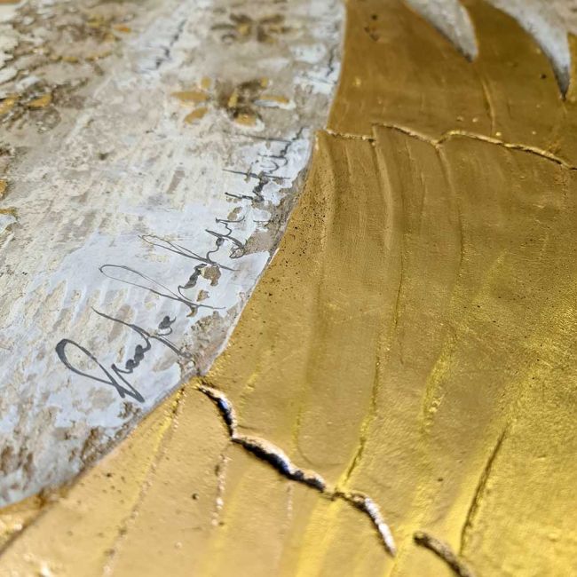 Meine Inspiration entspringt dem Motiv und der besonderen Aura jedes einzelnen Werks. Häufig beginne ich erst dann mit der Gestaltung, wenn ich aussergewöhnliche Schmuckstücke gefunden habe, die perfekt in das Kunstwerk integriert werden. Mit viel Intuition und kreativer Hingabe erschaffe ich so luxuriöse Meisterwerke voller Eleganz und Ausdruckskraft.